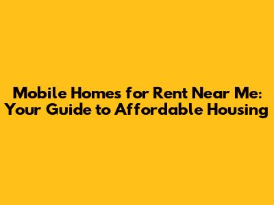 Mobile Homes For Rent Near Me: Your Guide To Affordable Housing