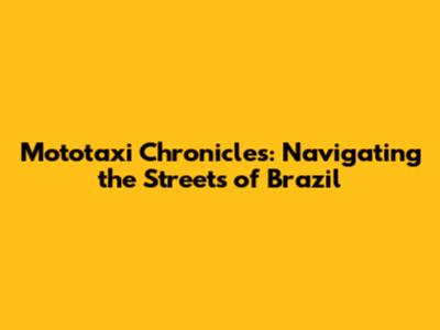 Mototaxi Chronicles: Navigating The Streets Of Brazil