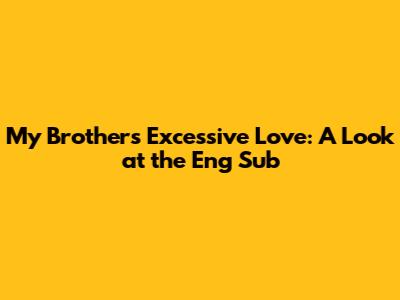 My Brother's Excessive Love: A Look At The Eng Sub