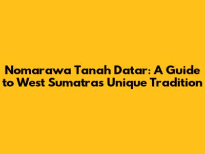 Nomarawa Tanah Datar: A Guide To West Sumatra's Unique Tradition