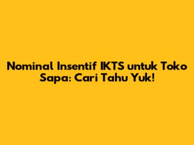Hey guys! Penasaran banget ya, berapa sih nominal insentif IKTS yang bisa didapatkan Toko Sapa? Nah, tenang aja, di artikel ini kita bakal kupas tuntas semua informasi yang kamu butuhkan. Biar nggak penasaran lagi dan bisa langsung merencanakan strategi untuk memaksimalkan keuntungan Toko Sapa kamu. Yuk, simak baik-baik!