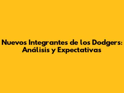 Nuevos Integrantes De Los Dodgers: Análisis Y Expectativas