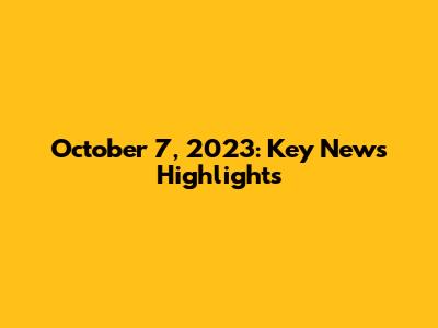 October 7, 2023: Key News Highlights