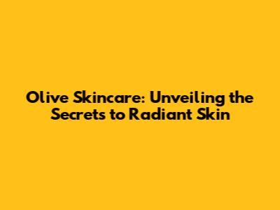 Olive Skincare: Your Guide To Radiant Skin