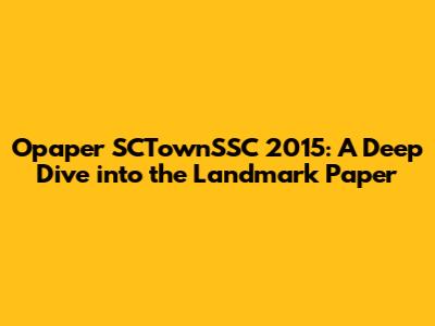 Let's explore the depths of the Opaper SCTownSSC 2015, a document that has undoubtedly left its mark. Guys, have you ever wondered what makes some papers so impactful? Well, this one seems to have all the right ingredients. In this detailed exploration, we will dissect the core components, relevance, and lasting implications of this document. Buckle up, because we are about to embark on an intellectual journey that will illuminate the significance of this piece of work.