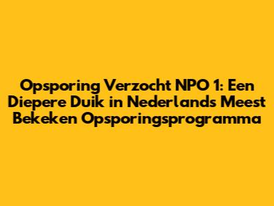 Opsporing Verzocht NPO 1: Alles Wat Je Moet Weten