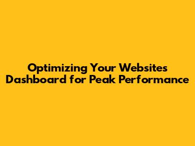 Optimizing Your Website's Dashboard For Peak Performance
