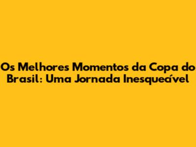 Os Melhores Momentos Da Copa Do Brasil: Uma Jornada Inesquecível