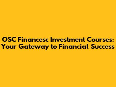 OSC Financesc: Investment Courses To Boost Your Finances