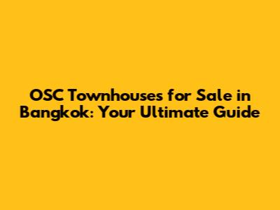 OSC Townhouses For Sale In Bangkok: Your Ultimate Guide