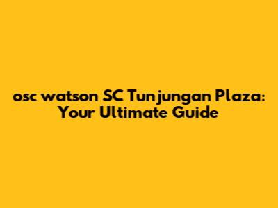 Osc Watson SC Tunjungan Plaza: Your Ultimate Guide