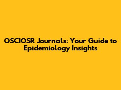 OSCIOSR Journals: Your Guide To Epidemiology Insights