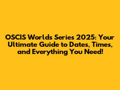 OSCIS Worlds Series 2025: Dates, Times, & Everything You Need!