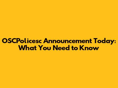 OSCPoliceSC Announcement Today: What You Need To Know