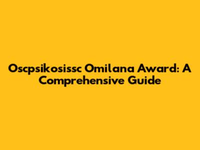 Oscpsikosissc Omilana Award: A Deep Dive