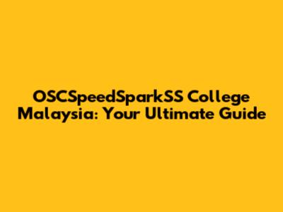 OSCSpeedSparkSS College Malaysia: A Comprehensive Guide