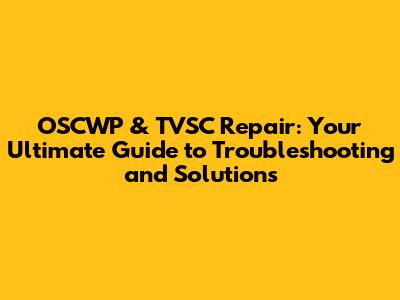 OSCWP & TVSC Repair Guide: Troubleshooting & Solutions