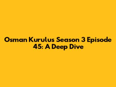 Hey history buffs and Osman Bey fans! Let's dive deep into Osman Kurulus Season 3 Episode 45, a rollercoaster of emotions, battles, and political intrigue. This episode is a pivotal moment in the series, brimming with suspense and action. So, grab your shields, sharpen your swords, and let's dissect the epic events that unfolded. We’re going to cover everything from the key plot points and character developments to the overall impact on the story. Buckle up, because it’s going to be a wild ride! Seriously, if you're a fan, you know this episode is a big deal. Get ready for all the drama, the epic battles, and the shocking twists – it’s a total game-changer. I am going to break it down, piece by piece, so you don't miss a single thing. Trust me, you're going to want to know what happened, and why it matters to the overall story. This is the stuff that makes the show so captivating, the kind of episode that sticks with you long after the credits roll. It's like, Osman Bey just keeps getting better and better, right? Let's get into the nitty-gritty of what made this episode so memorable and why it's a must-watch for any true fan of the series. We will explore the major themes, character arcs, and of course, those heart-stopping battle sequences that keep us on the edge of our seats. So, whether you’re a seasoned watcher or new to the world of Osman, this breakdown is designed to give you a fresh perspective. Get ready to relive the excitement, the tension, and the sheer brilliance of this amazing episode. Trust me, you'll be wanting to rewatch it right away!