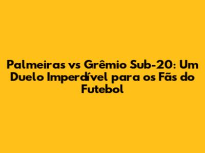 Prepare-se para um jogo cheio de emoções, com muita técnica, raça e rivalidade. Palmeiras e Grêmio Sub-20 prometem um grande espetáculo, e você não pode ficar de fora dessa! Compartilhe este artigo com seus amigos, familiares e com todos os apaixonados por futebol. Juntos, vamos celebrar o esporte e torcer pelos nossos times! O futebol de base é uma paixão que une pessoas de todas as idades e de todos os lugares. Assistir a um jogo como Palmeiras x Grêmio Sub-20 é uma experiência única, que nos faz vibrar, torcer e sonhar. Então, prepare-se para a emoção, a torcida e a alegria do futebol de base! Acompanhe as novidades, os resultados e os destaques do jogo, e não perca nenhum lance importante. O futuro do futebol brasileiro está em campo, e você pode fazer parte dessa história. Vamos juntos torcer pelos nossos times e celebrar o esporte que tanto amamos! Boa sorte aos jogadores, e que vença o melhor!