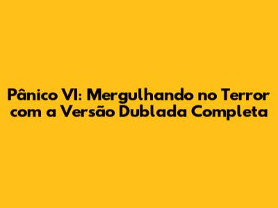 Onde Encontrar Pânico VI Dublado: Seu Guia Completo