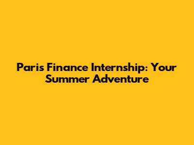 Paris Finance Internship: Your Summer Adventure