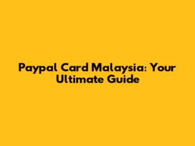 Paypal Card Malaysia: Your Ultimate Guide