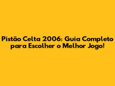 Pistão Celta 2006: Guia Completo Para Escolher O Melhor Jogo!