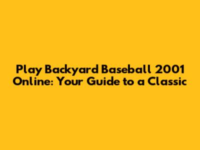 Play Backyard Baseball 2001 Online: A Nostalgic Guide