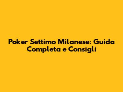 Poker Settimo Milanese: Guida Completa E Consigli