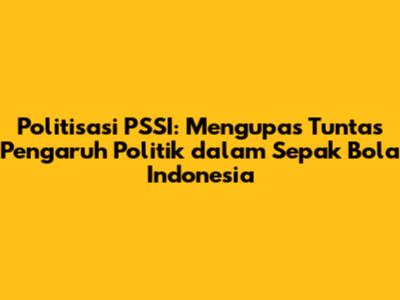 Politisasi PSSI menjadi topik hangat yang kerap kali menghiasi perbincangan para pecinta sepak bola di Indonesia. Guys, mari kita bedah lebih dalam mengenai fenomena ini. Kita akan melihat bagaimana politik mempengaruhi tata kelola, kebijakan, hingga performa timnas. Artikel ini akan mengupas tuntas mengenai dampak politisasi terhadap perkembangan sepak bola tanah air, serta tantangan yang harus dihadapi untuk menciptakan ekosistem yang lebih sehat dan profesional. Yuk, simak penjelasannya!