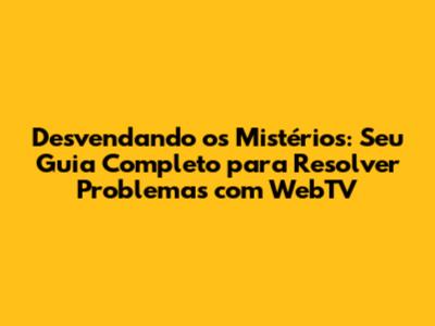 Problemas Com WebTV? Veja Como Resolver!