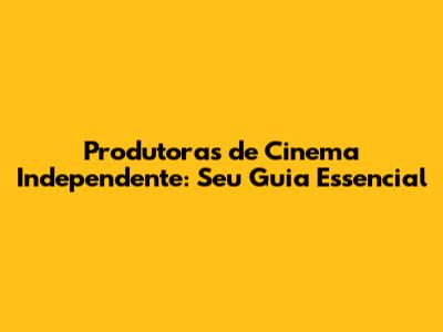 Produtoras De Cinema Independente: Guia Completo Para Cineastas