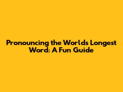 Pronouncing The World's Longest Word: A Fun Guide