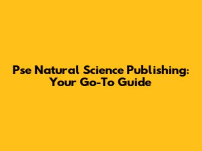 Pse Natural Science Publishing: Your Go-To Guide