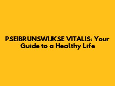 PSEIBRUNSWIJKSE VITALIS: Your Guide To A Healthy Life
