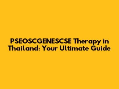 PSEOSCGENESCSE Therapy In Thailand: A Comprehensive Guide