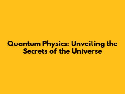 Quantum Physics: Unveiling The Secrets Of The Universe