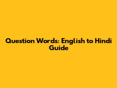 Question Words: English To Hindi Guide