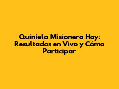 Quiniela Misionera Hoy: Resultados En Vivo Y Cómo Participar
