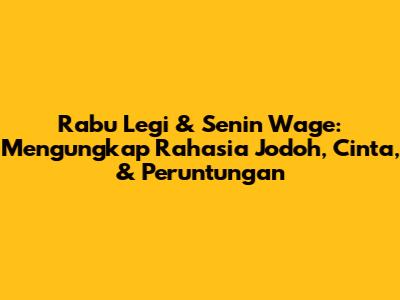 Rabu Legi & Senin Wage: Rahasia Jodoh, Cinta, & Peruntungan