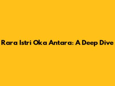 Rara Istri Oka Antara: A Deep Dive
