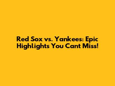 Red Sox Vs. Yankees: Epic Highlights You Can't Miss!