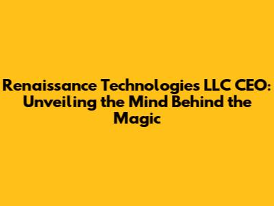 Renaissance Technologies LLC CEO: Unveiling the Mind Behind the Magic