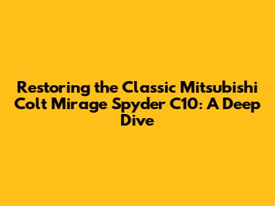 Hey car enthusiasts! Ever dreamed of breathing new life into a classic ride? Well, buckle up, because today we're diving deep into the world of Mitsubishi Colt Mirage Spyder C10 restoration! This isn't just about fixing up an old car; it's about preserving a piece of automotive history. The C10, with its sleek lines and convertible top, is a real head-turner, and restoring one is a rewarding experience. This guide will walk you through everything, from finding a project car to the final, triumphant drive. Let's get started!