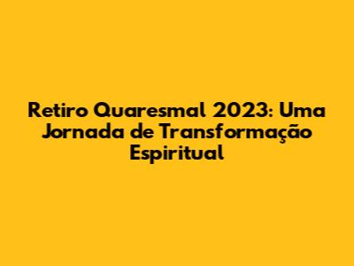 Retiro Quaresmal 2023 – Hey pessoal! Preparados para embarcar em uma jornada incrível de autodescoberta e renovação espiritual? O Retiro Quaresmal 2023 está chegando, e com ele, a oportunidade perfeita para refletir, orar e fortalecer nossa fé. A Quaresma é um tempo especial no calendário cristão, um período de 40 dias dedicado à preparação para a Páscoa, a celebração da ressurreição de Jesus Cristo. É um momento de introspecção, de renúncia e de crescimento espiritual. E o retiro quaresmal é uma ferramenta poderosa para nos ajudar a viver intensamente este tempo.