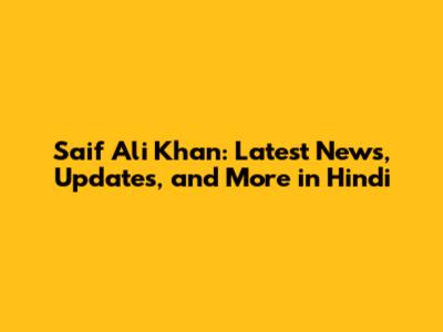 Saif Ali Khan: Latest News, Updates, And More In Hindi