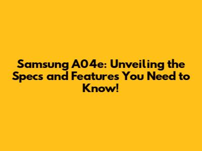 Samsung A04e: Specs, Features & More!