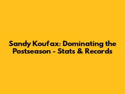 Sandy Koufax: Dominating The Postseason - Stats & Records