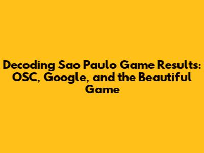 Sao Paulo Game Results: Decoding OSC And Google's Data