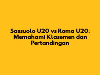 Sassuolo U20 Vs Roma U20: Klasemen, Pertandingan, Dan Analisis